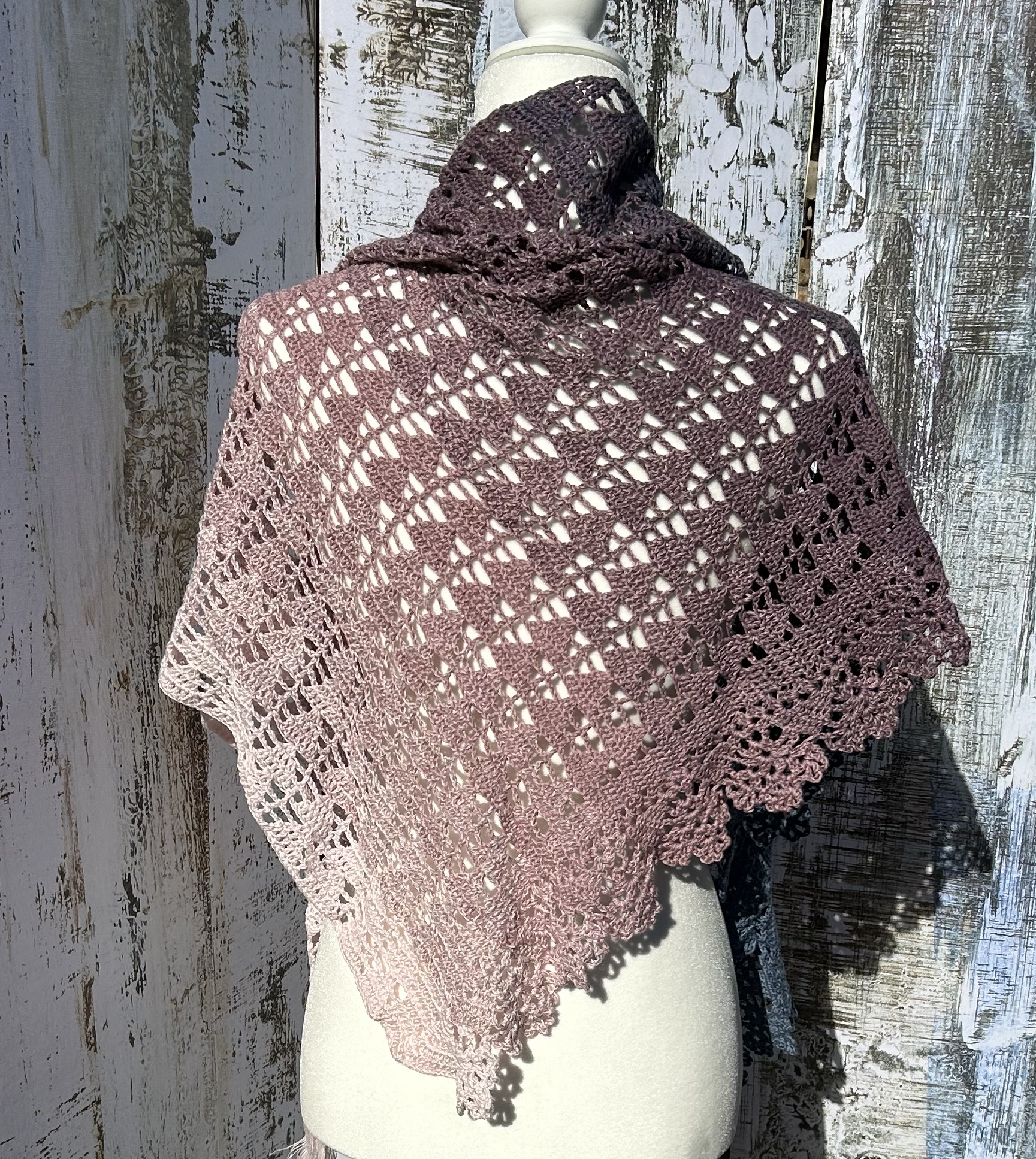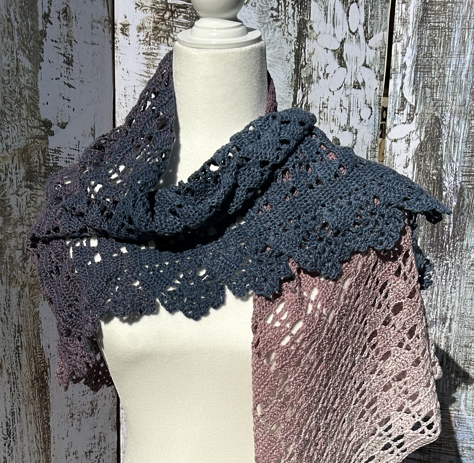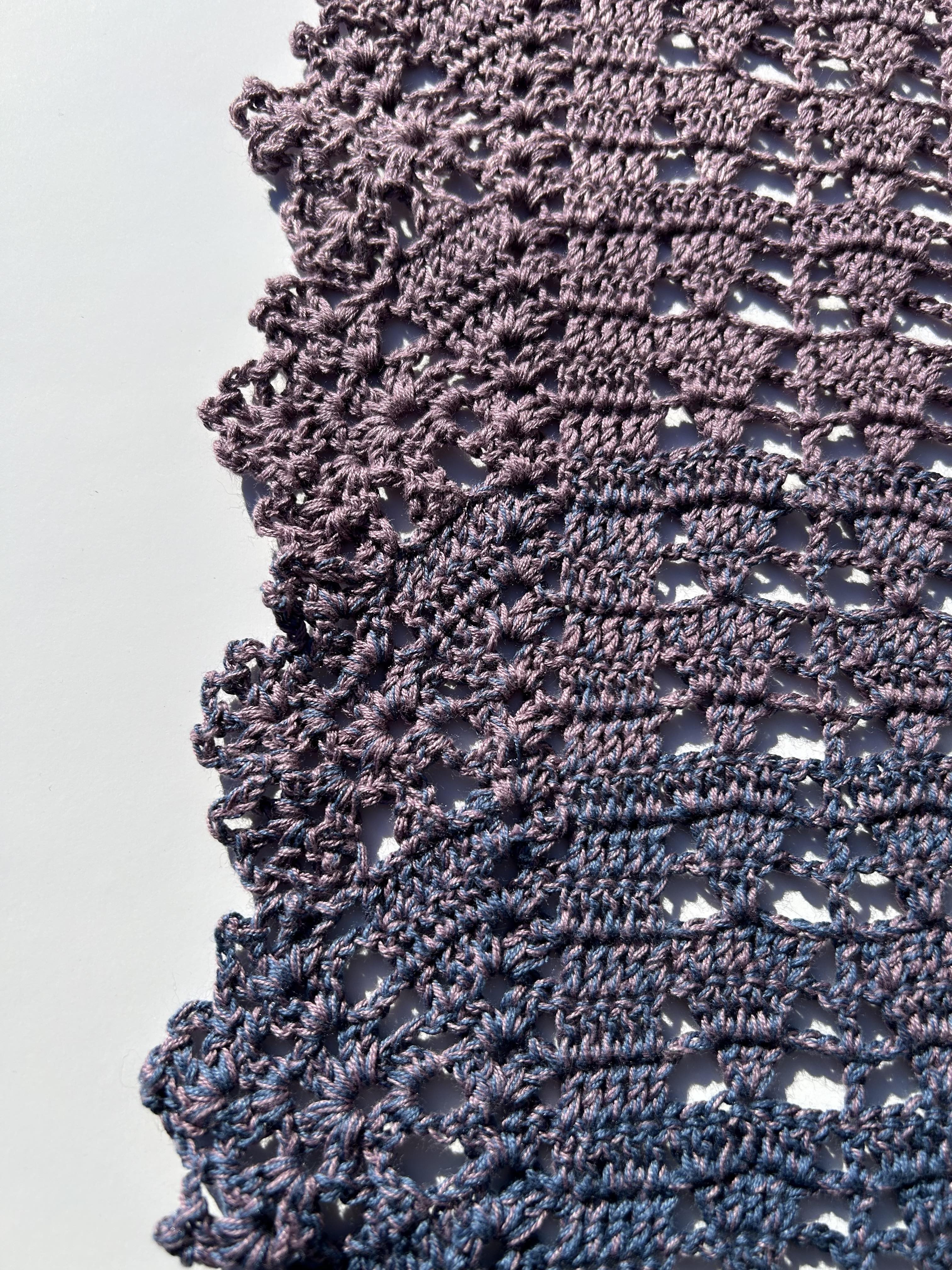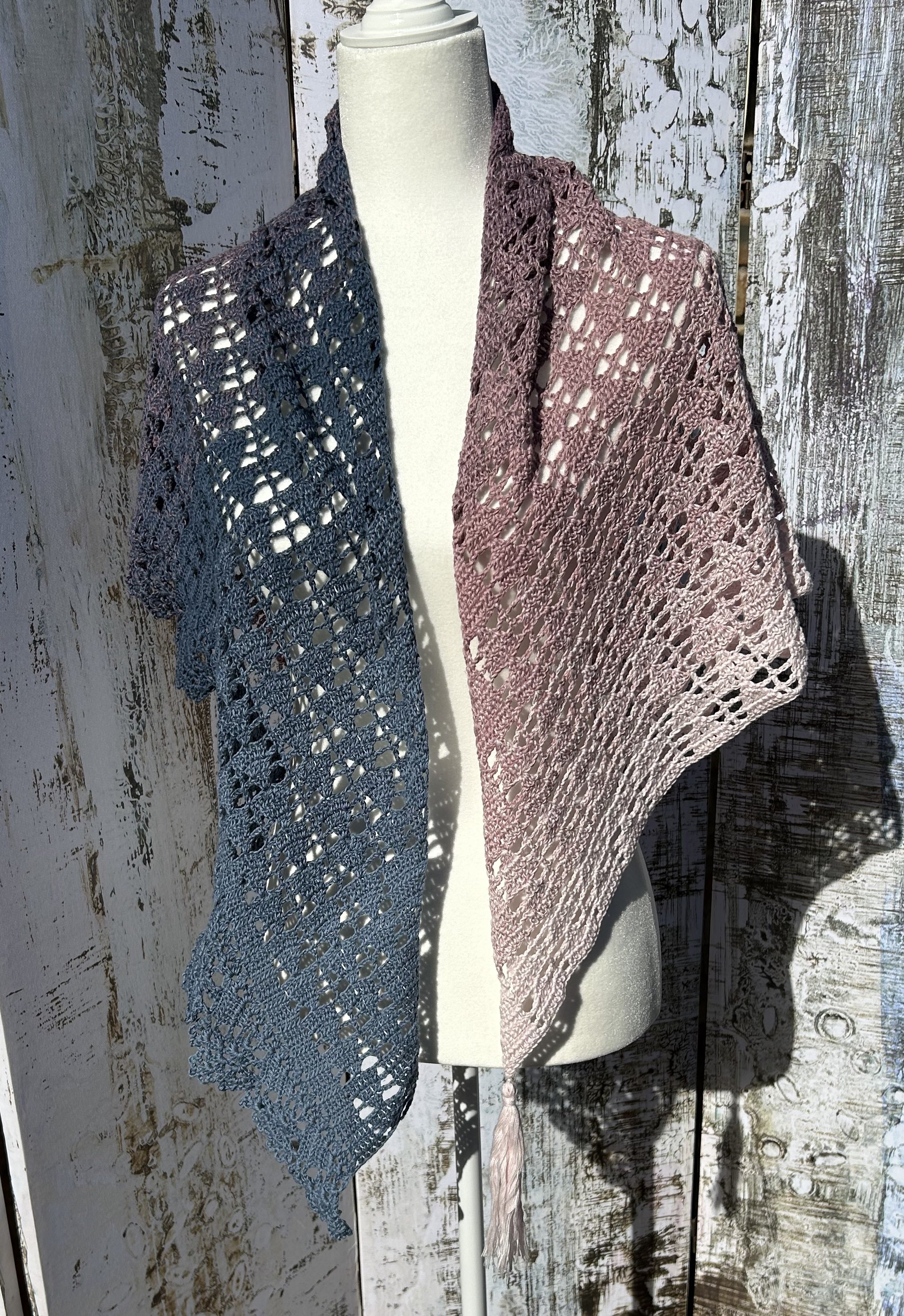 Nyota Shawl in Cotton/ Acrylic Blend in a gradient from pink to blue