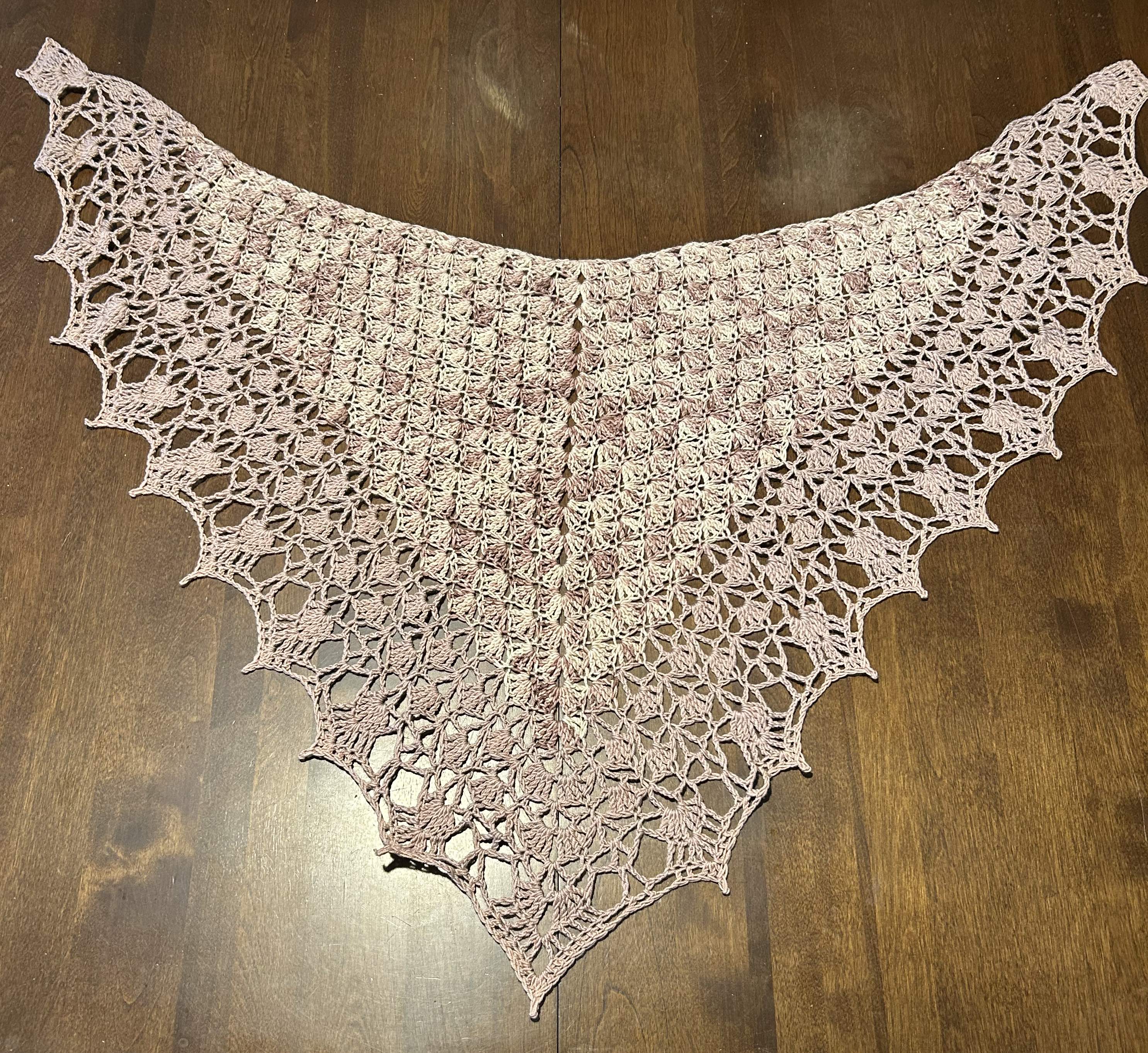 Mini-shawl, more like a bandana than a full shawl. Something to add a little color around the neck.